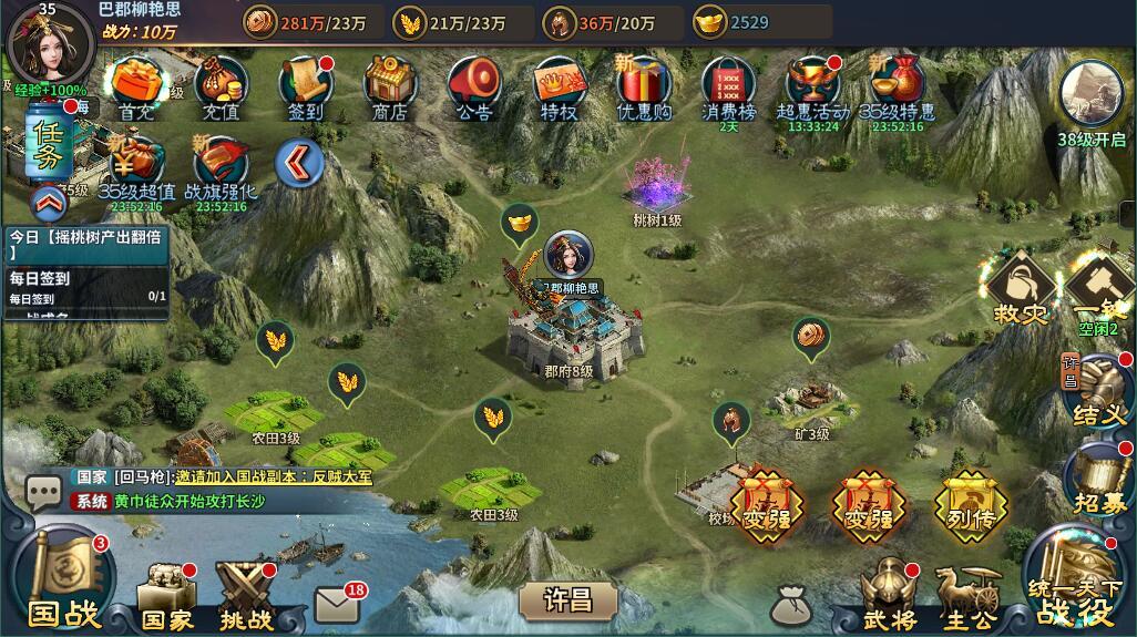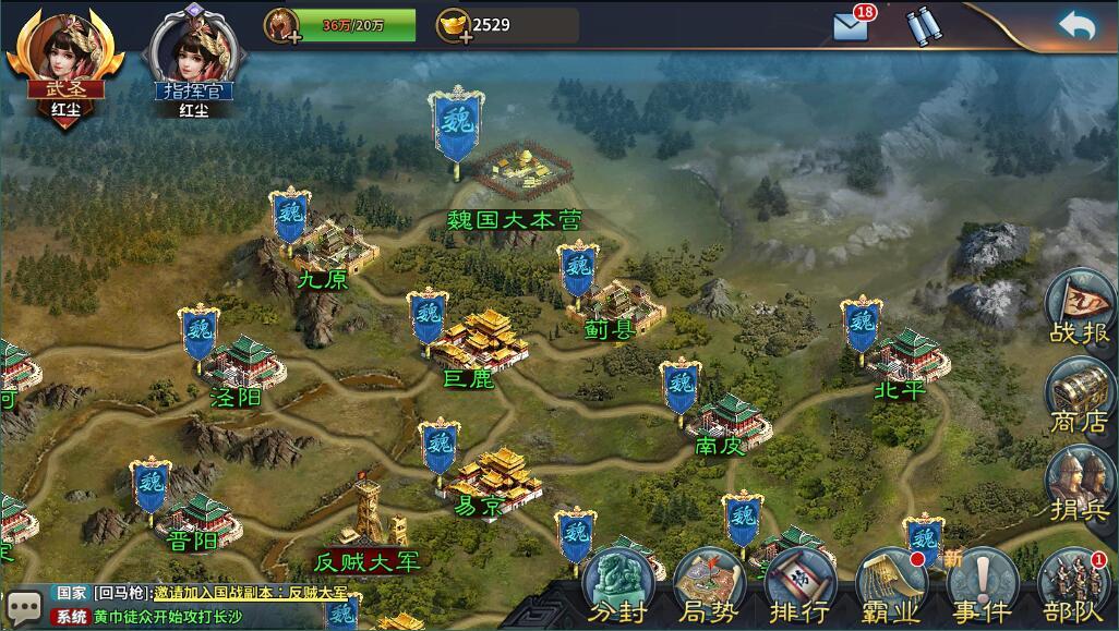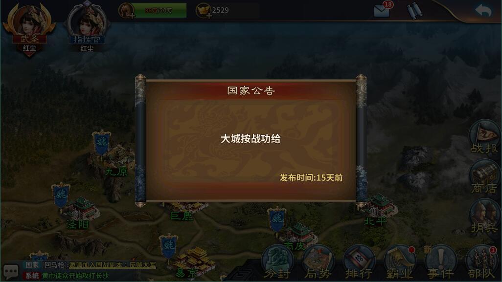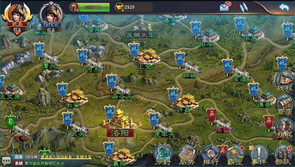 随后,在加入了阵营之后,玩家们就可以到世界地图当中,寻找一些容易攻打的敌方城池即可。成功的完成了一次国战的战斗任务之后,玩家们就会开启国战的全部内容。后期还想进行战斗的时候,直接点击左下方的国战即可。