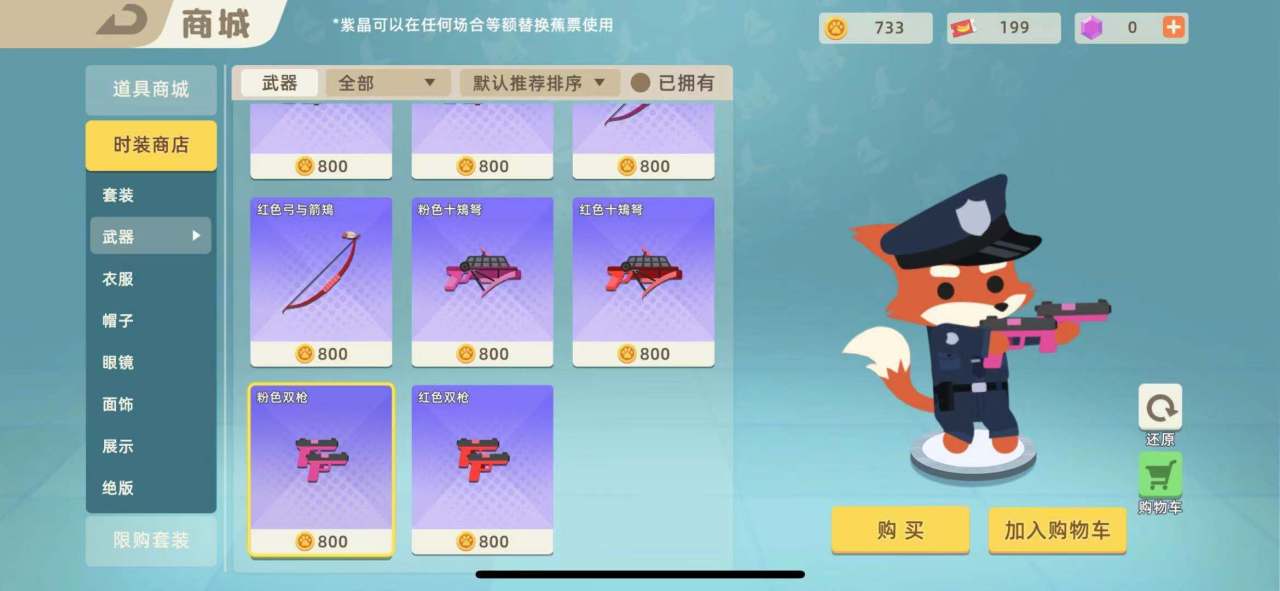 不同种类的双枪武器外观需要玩家在商城提前购买才可以获取,在时装商城武器分类中可以购买到双枪的外观,购买外观需要一定的金币和蕉币,比较稀有的外观还需要紫晶购买,玩家可以进行一些充值进行够买,装备后就可以在游戏对局中捡到双枪后展示出来。
