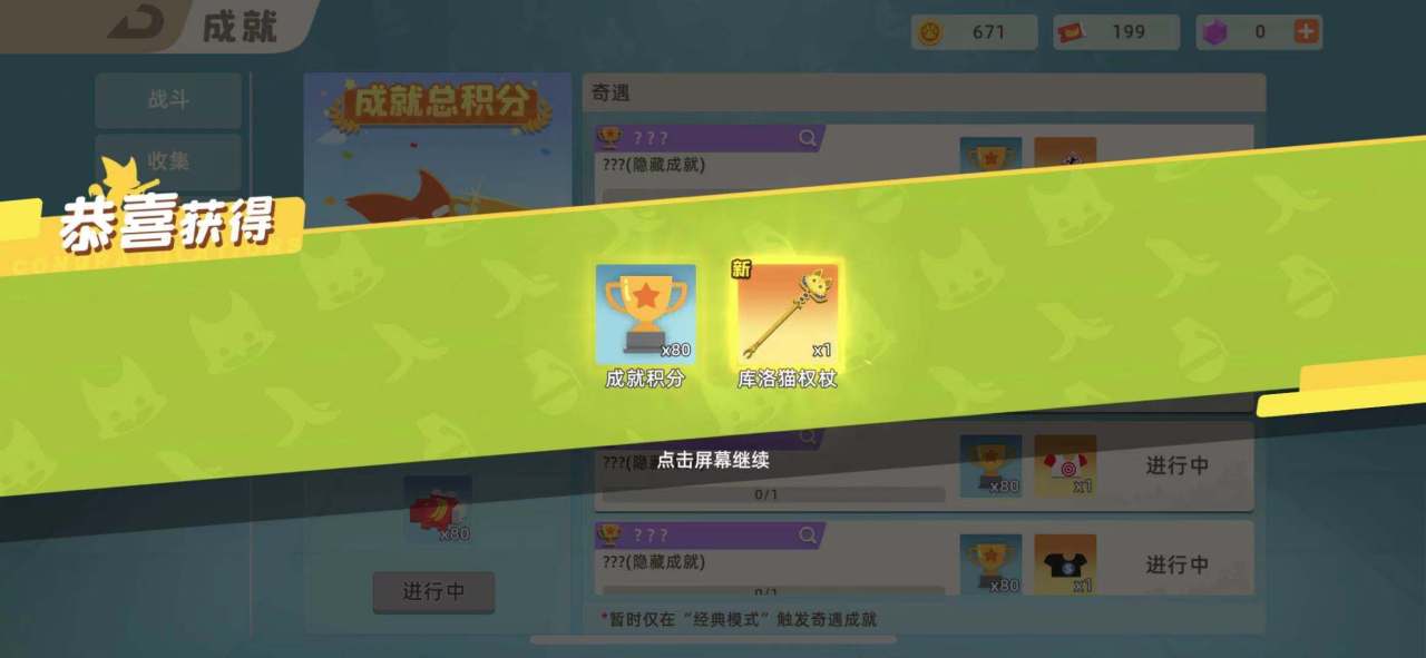 等待游戏对局结束以后我们就可以进入成就界面,找到对应的成就点击完成,即可获取库洛猫权杖,回到人物界面进行穿戴即可。