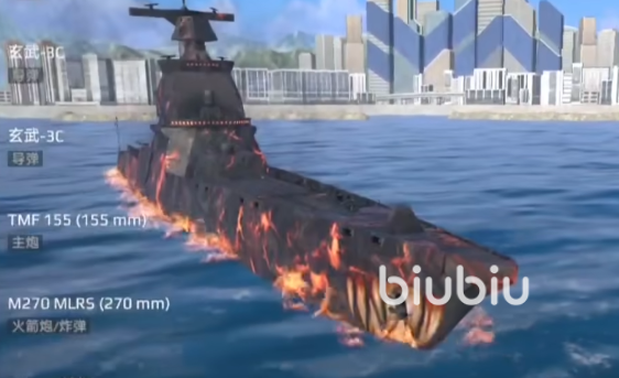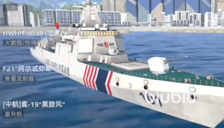这艘黄金购买的船只性能全面,导弹与火箭炮数量充足,但缺少鱼雷是唯一的短板。防空系统表现尤为突出,S400以高射速和高单发伤害闻名,速度达到27.8节,完全够用。如果预算允许,这是一艘非常值得入手的船只。