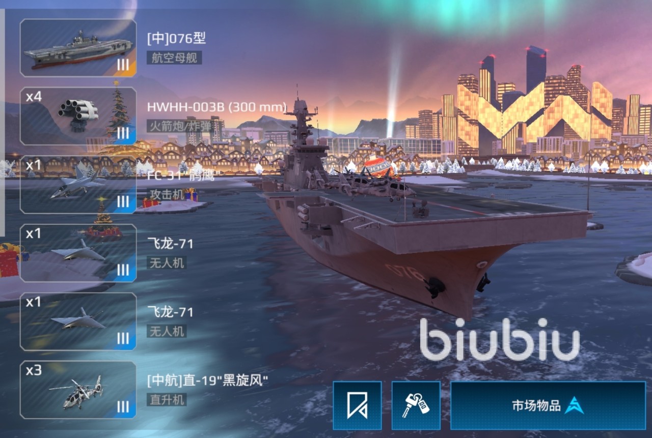 076型这个航母玩家可以到市场内购买,这个航母最大的特点就是火力猛,上面能同时搭载四个火箭炮,原装的火箭炮是0038型的,后续大家还能更好火力更强的去用,有了这四个火箭炮,就算和敌人面对面战斗,也有很大的优势,基本上五六秒就能完成一次齐射,普通的驱逐舰很难抵达这样的火力。此外,舰船上还能携带无人机、直升机、攻击机,使用它们能够扩大你的攻击范围,给远处的目标造成有效打击。