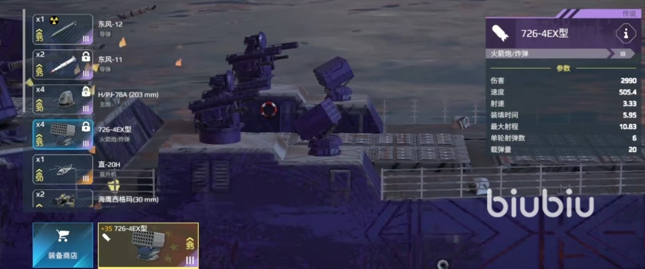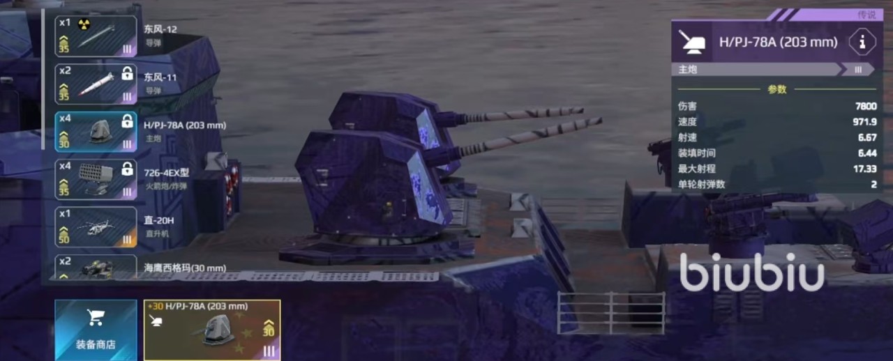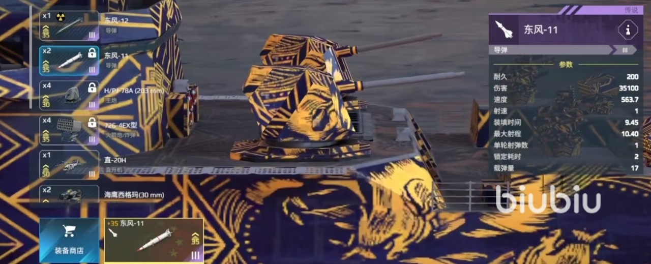 在其他装备搭配的时候,单发导弹槽位小编建议带上东风12,和东风11配合起来,分两批打出。直升机方面可以带上直20,加强反潜能力,如果追求点灯效果也可以考虑带上绝影8,或者是更高品质的直升机。自动炮方面考使用海鹰西格玛。防控方面可以带上j6近防系统和鱼叉来进行混搭。这样搭配在各个方面都达到了较好的程度,而且也不用投入太多。