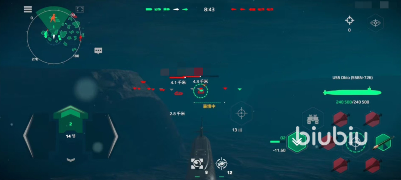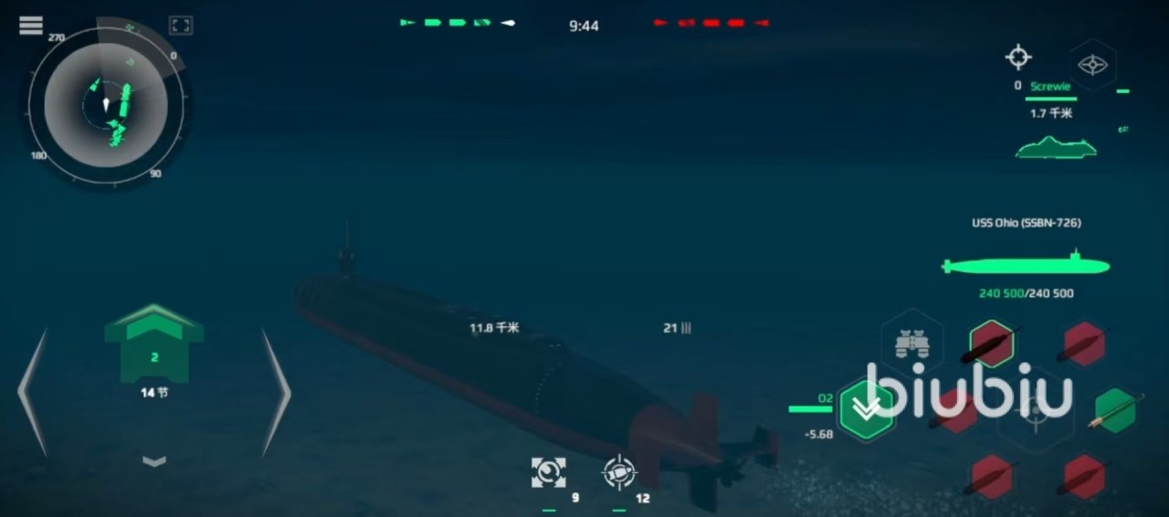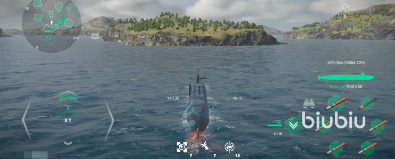 如果面对的是有丰富反潜经验的玩家很容易直接被抓住。操纵也不够灵活,躲避敌方鱼雷或者是近距离周旋是比较吃亏。这样在实战中就一定要注意避开自己的弱点,不能够频繁的改变位置和航向。还有一点是在一些地图中,因为受限于地图大小,所以并不太适合潜射导弹使用,这样也限制了俄亥俄的发挥。需要上浮到较近距离才能发挥火力,增加了被敌人发现和攻击的风险。