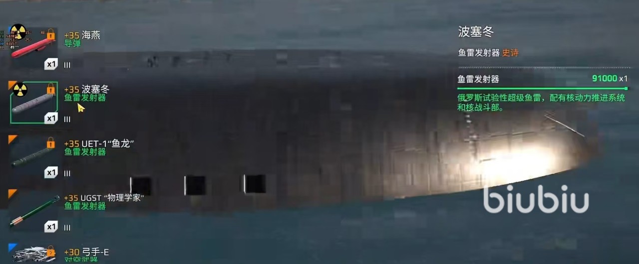 它所配备这些强大武器装备可以对敌方舰艇造成巨大的威胁,尤其是在对方没有特别加上反潜武器的情况下,更是容易被打掉较多的血量,这也是很多玩家纷纷反映它比较变态的原因。而且作为核潜艇,它在水下还具有出色的隐蔽性,可以更好地接近敌方发动突然袭击,较长的续航能力绝对是一项优势。但是他也有比较多的劣势,首先是机动性一般,虽然比部分潜艇要强,但依然属于体型比较大的一类,机动性不如小型舰艇,加速转向也相对迟缓。