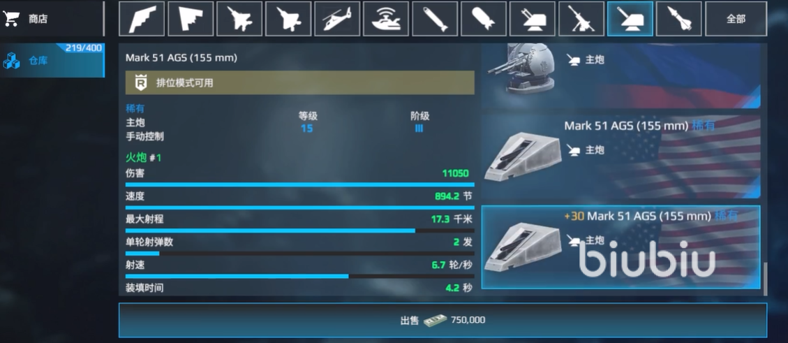 大家在主界面的右下角会看到装备选项,点击进入后便可以看到商店和仓库,仓库里的就是你自己拥有的。然后通过滑动选择,就会依次出现各个战舰,其下方都会显示出售选项。如果你想好了就点击出售即可卖出,不过需要先把武器拆卸掉。