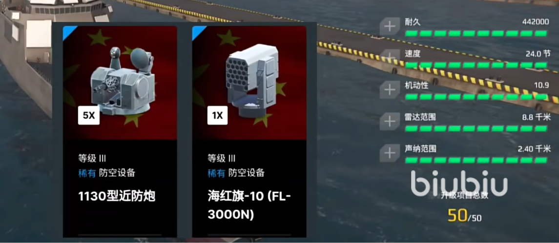 至于主炮的话,这里推荐大家用HPJ-38,虽然说他的杀伤范围不广,但是穿透伤害却很高,可以无视敌人军舰的防御。然后副炮的话,就可以直接使用两座HWHH-003B。作为稀有的火箭炮,所能够造成的攻击范围更广,可造成多段伤害。