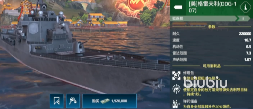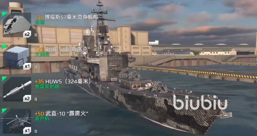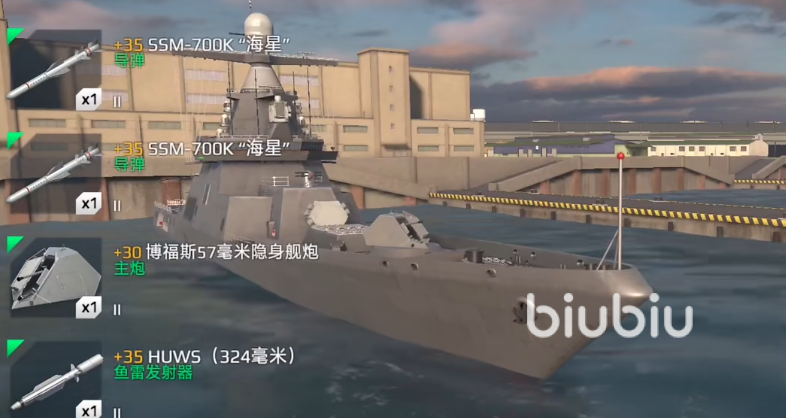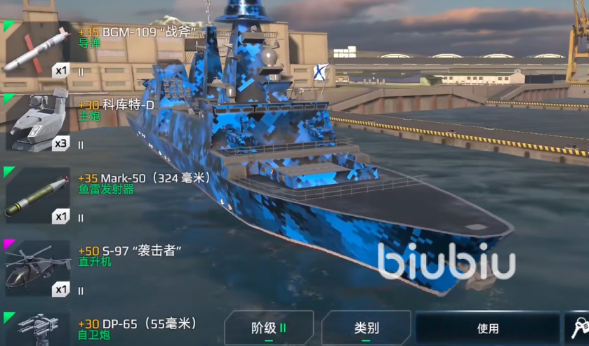 可以理解为055的青春版,有中近程的优势,2鱼雷加2火箭炮,耐久也挺高,很符合视距对抗的需求,不过也不建议升满,因为二级船的不值得浪费芯片,只要把船的主力输出武器升级一下就行了。