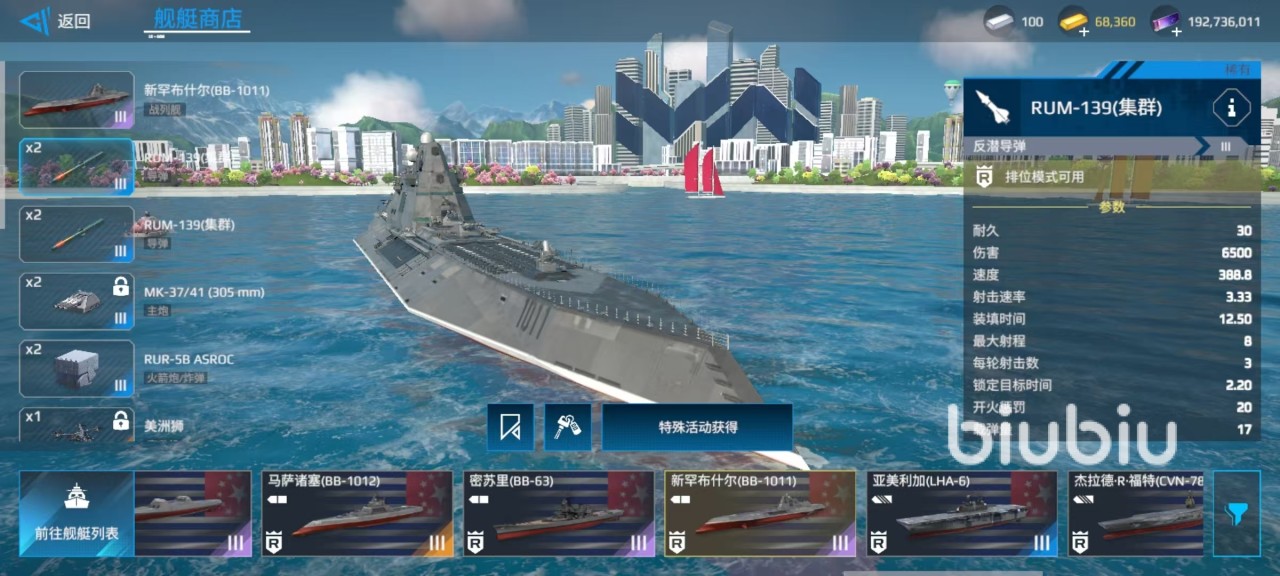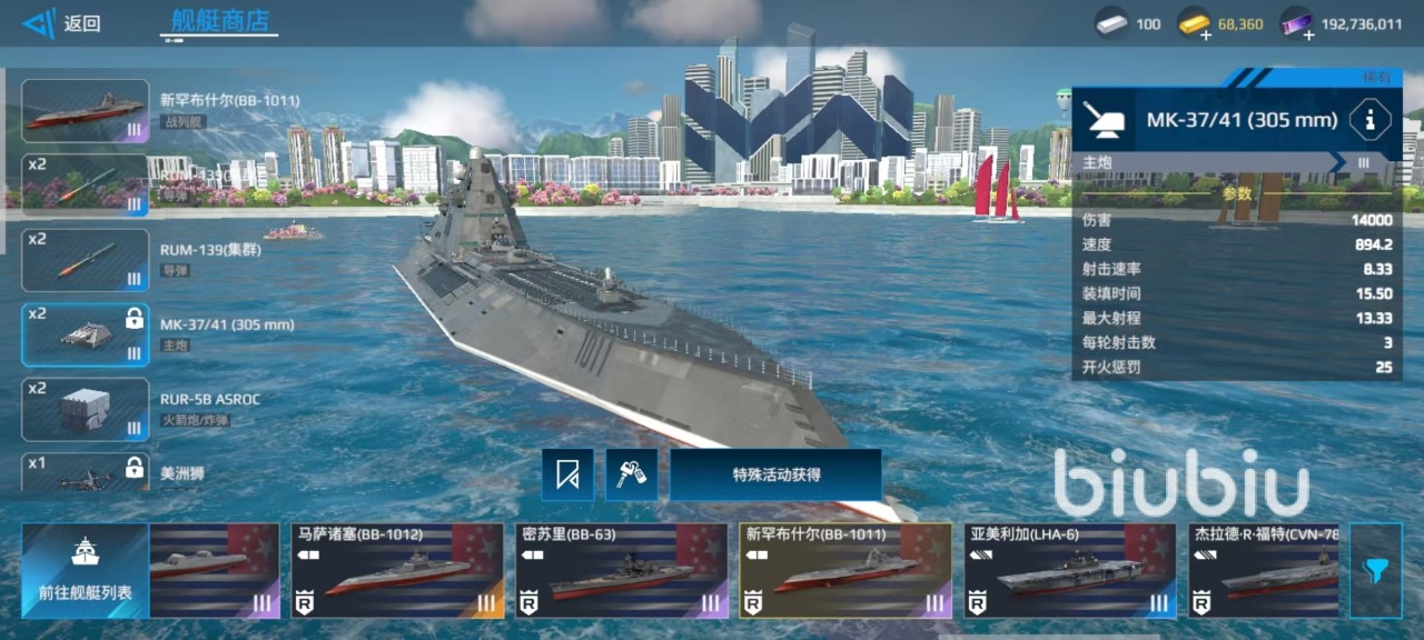 在自身武器装备方面,无论是搭载的主炮、火箭炮还是导弹以及直升机,都带来了非常强的火力输出能力,利用其强大的主炮和火箭炮,对敌方舰艇进行攻击,同时依靠自身的耐久,承受一定的伤害,是游戏中的主要玩法。利用机动性和速度的特点,与敌方大型舰船进行拉扯骚扰,只要找到合适的时机就能进行攻击。