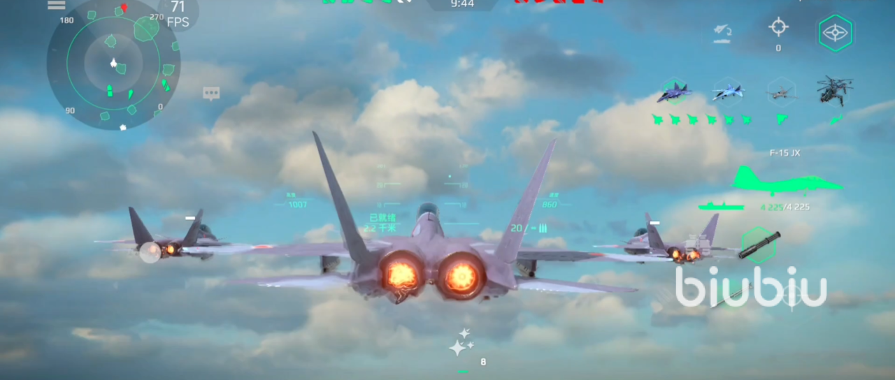 制空战术利用中程导弹(AIM-120)远程消耗敌方战机,保持10公里以上距离,避免进入格斗战。对地攻击建议俯冲投弹时需提前2秒释放激光制导炸弹,利用地形遮挡敌方防空火力。战术组合推荐护航流使用F15JX(4架)+预警机(E-2D),利用预警机的雷达优势扩大探测范围,形成防空网。偷袭流使用F15JX(2架)+无人机(猎人),先以无人机吸引敌方火力,再通过F15JX投掷炸弹突袭。