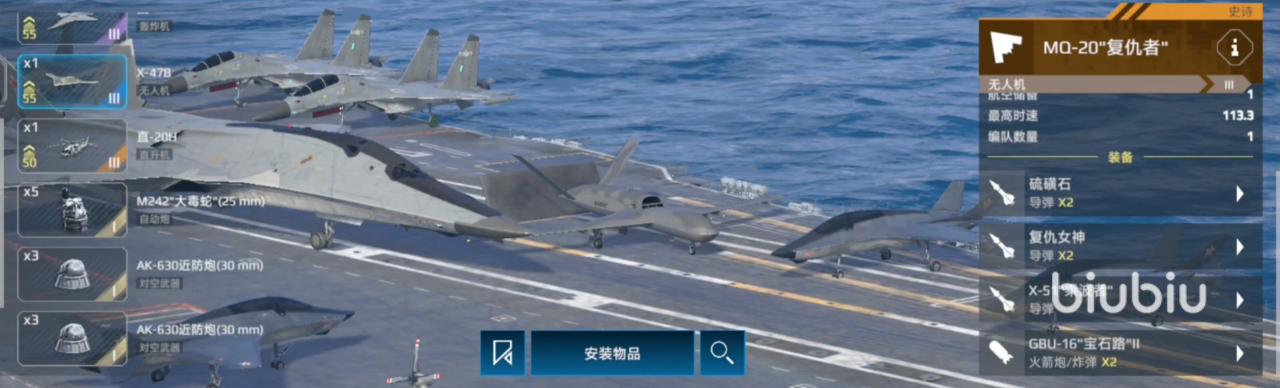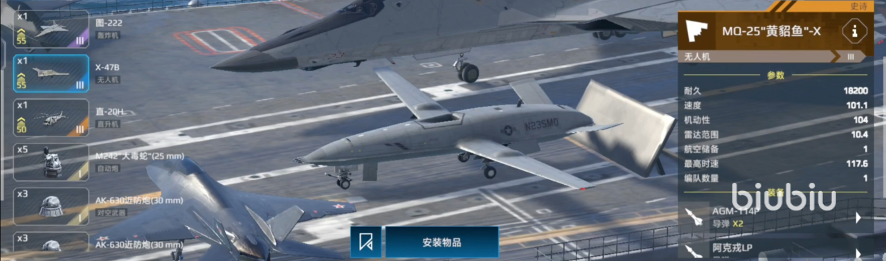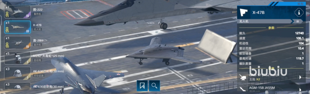 X47B:隐身设计的重型攻击无人机,配备12枚精确制导导弹,一轮齐射可造成96000点伤害,适合对敌方航母或主力舰实施突袭。但对操作要求较高,需提前规划飞行路线以规避雷达探测。