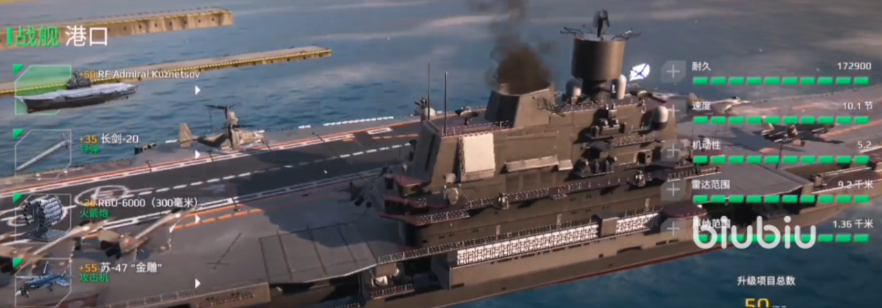 推荐理由:作为二阶航母中性价比极高的代表,库兹涅佐夫号配备了强大的防空系统和反潜能力,尤其适合新手玩家。优点是装备齐全,防空火力强大。可搭载苏-34等高性能舰载机,输出能力突出。价格亲民,适合预算有限的新手玩家。缺点是机动性较差,转场能力有限。耐久度在二阶航母中偏低,需要注意战场位置。