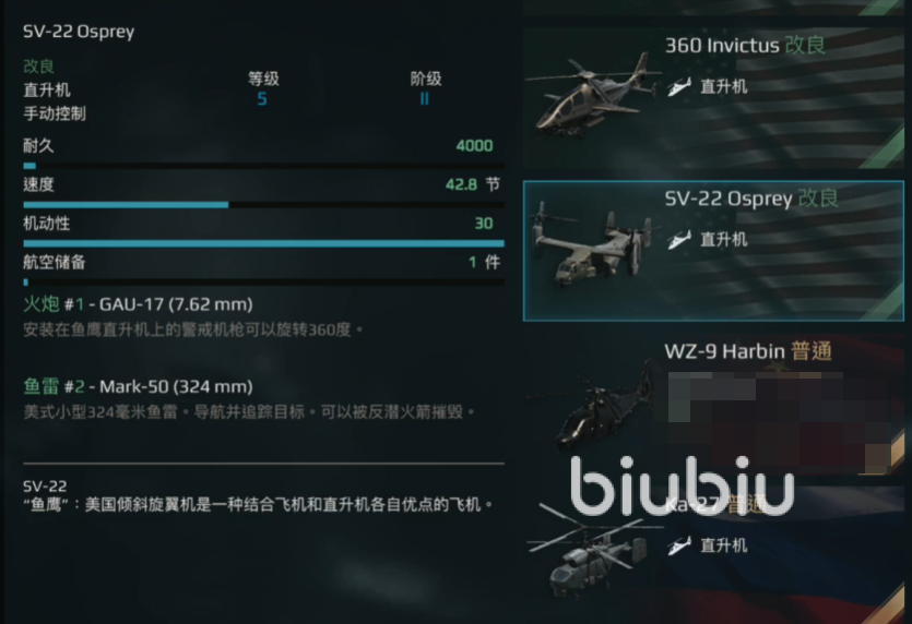 鱼鹰,具备良好的对空和反潜能力,适合多用途使用。阿帕奇,火力强大,适合对地打击。