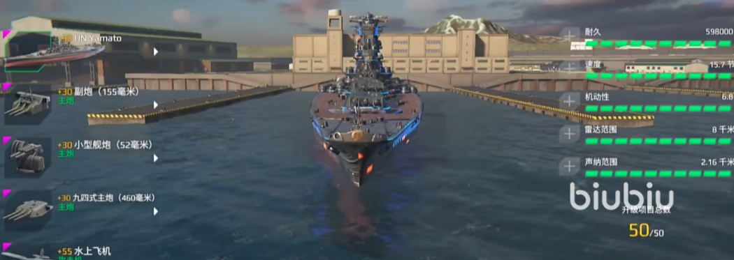 巡洋舰,综合性能均衡,火力强大,适合多种战术需求。搭载多枚鱼雷,具备强大的水下打击能力。主炮火力强劲,适合远程打击。导弹配置丰富,具备良好的远程压制能力。缺点是体型较大,受弹面积大容易成为敌方集火目标。机动性一般,需要玩家具备良好的操作技巧。