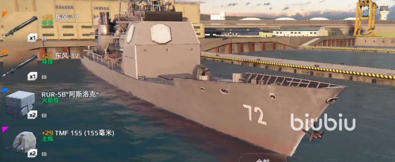 驱逐舰,特点是高机动性,适合快速突击和游击战术。可以搭载X51系列和东风系列导弹,具备强大的远程打击能力。机动性强,适合快速转移和规避敌方攻击。火箭炮配置优秀,近战压制强。劣势在于没多少鱼雷,水下打击能力有限。防御能力一般,需要依靠机动性规避伤害。