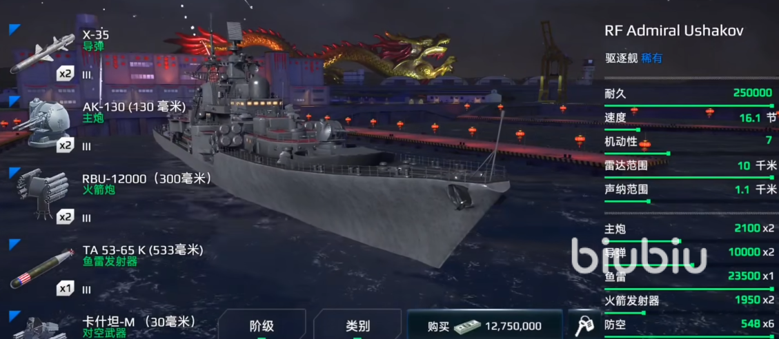 防空能力极强,适合航母编队的护卫角色。拥有较好的生存能力,主炮+导弹混合输出。