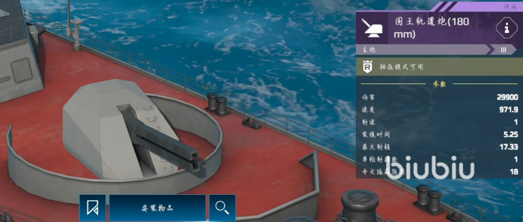 国王轨道炮是目前最新款的可替换电磁轨道炮,其理论伤害在2万9以上,最大射程17公里,弹丸初速971.9节,满级装填用时5秒2,开火延迟约为0.6秒。