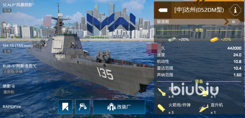 2025年05月12日 16:46 来源:梦魇立库巴052DM达州舰是《现代战舰》中的一艘多功能驱逐舰,强大的火力、优秀的反潜能力和一定的防空性能,可以在很多场合中发挥作用。而本次这里给大家带来的是现代战舰达州舰搭配推荐,毕竟再好的综合性能,也是需要合适的武器配置才能发挥出作用,下面就分享一些比较平民的武器配置。