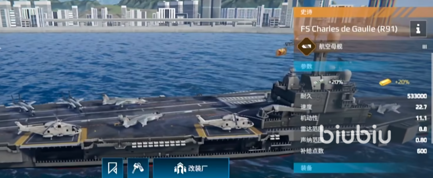 推荐舰载机搭配:战斗机阵风M(空优与反舰兼备),无人侦察机:适配侦察型无人机,用于视野扩展,反潜机:布设反潜弹幕,防止潜艇偷袭。模块建议舰载机出击加速系统、防空反导装置、航母辅助引导系统。打法思路:战术支援型玩家的理想选择,适合多线作战控制,提供空中压制与全局视野,控制战场节奏。