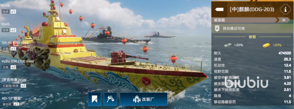拥有5个导弹槽位,航行速度快、机动灵活,可以在海战中快速调整自身的位置,是战场上的多面手。