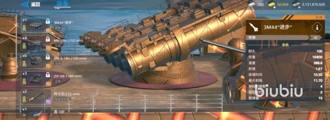 作为一款战斗游戏,强大的装备是非常重要的,游戏中的装备种类繁多,包括3M44“进步”(导弹)、MK-5Bls(主炮)等,每种装备都能带来不同的射程、威力、装填速度等属性。小伙伴们可以根据不同战舰的特点和战斗需求,去搭配武器,这样一来就能发挥出最大的战斗力。