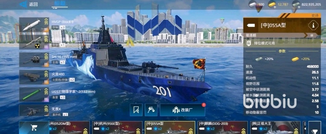 目前为止,游戏所拥有的艘战舰和飞机超过200种,涵盖了航空母舰、驱逐舰、巡洋舰、潜艇等多种类型,如055A型驱逐舰、福特号航母、阿穆尔级潜艇等,它们来自不同的国家,而且每艘战舰都有其独特的外观、性能和武器系统。