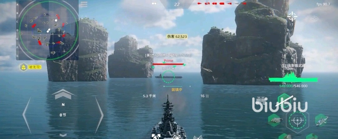 当然,具体作战的时候,还是需要各位友友去根据战场情况灵活运用各种战术,如利用海面上的障碍物去躲避敌人的攻击,像下图中船舰前方的礁石就可以用来躲避攻击,通过合理走位和射击时机的选择来击败敌人。