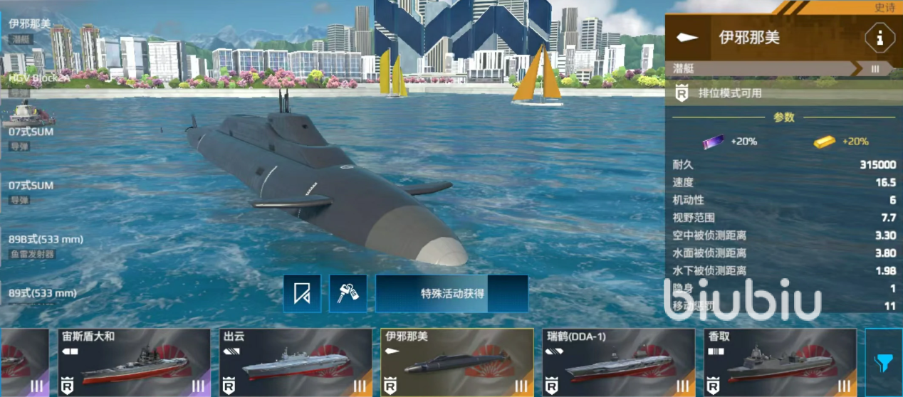 北风之神,只是听名字就给人以威严感,作为俄罗斯的先进核潜艇之一,它拥有19节的航速和高达19万的血量,续航能力极强,氧气含量达到了惊人的390。在武器配置方面,北风之神可携带两枚不同类型的导弹和两枚鱼雷,虽然整体火力略显薄弱,不太适合用来刷金币或进行高强度输出作战,但作为一艘生存能力强、行动灵活的潜艇,在战术突袭或中远程支援战斗中仍有其价值。