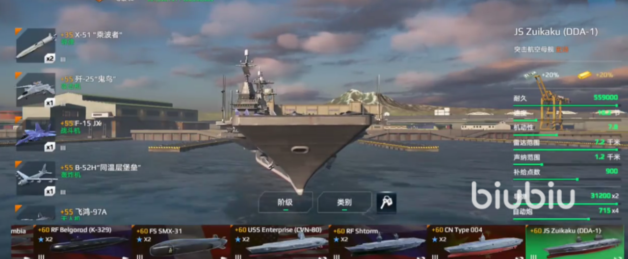 企业号是美系航母比较具有代表性的存在,综合性能是非的出众,飞机编队自带有F-35C隐身舰载机,有极高的打击精度,以及生存能力,雷达和反潜能力强,有强力电子战系统,能快速发现且压制潜艇;自身的耐久和自保出众,装甲很厚实,有自持的防空系统,适合中远距离作战,前几东西和航空队能很好的压制敌人。