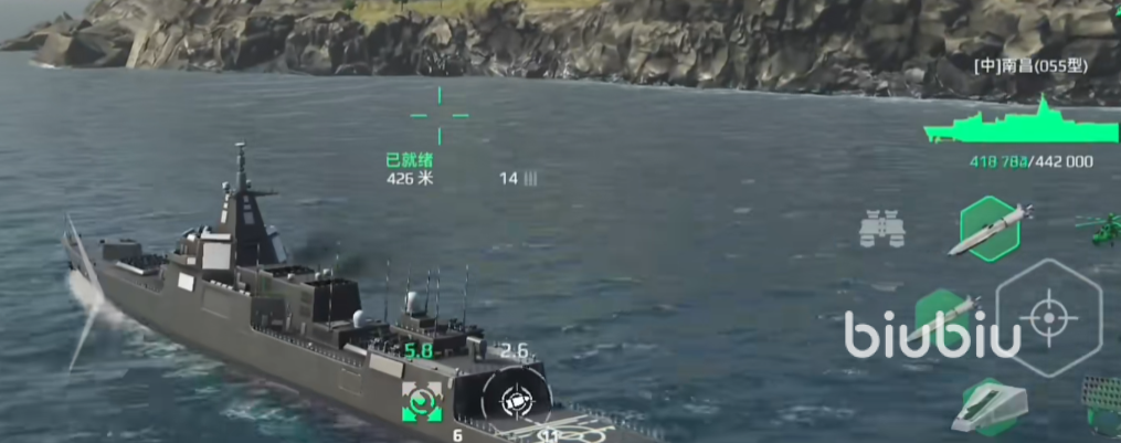 055型驱逐舰的转向表现亮眼,战术核心是依靠引擎过载技能,在不开启的情况下,倒退速度已达12节,且在转弯过程中不会损失速度,前进速度稳定在25节;而开启过载后可瞬间提速至30节。得益于高速与灵活的特性,055能快速规避敌方火力,迅速进入掩体规避伤害。