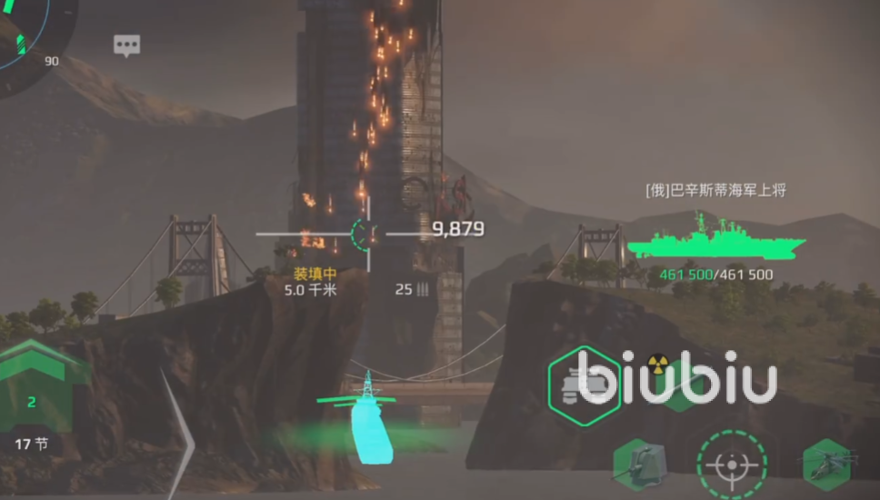 RBU2500,典型的中近程大范围溅射火箭弹,拥有强力AOE能力和反潜优势。在敌人刚发射导弹或鱼雷时,贴脸扫射不仅能造成爆破,还能干扰对方武器轨迹。虽然射程极短、弹速也偏慢,但秒伤极高,尤其在地图复杂的地形,比如峡湾或小岛边上使用。