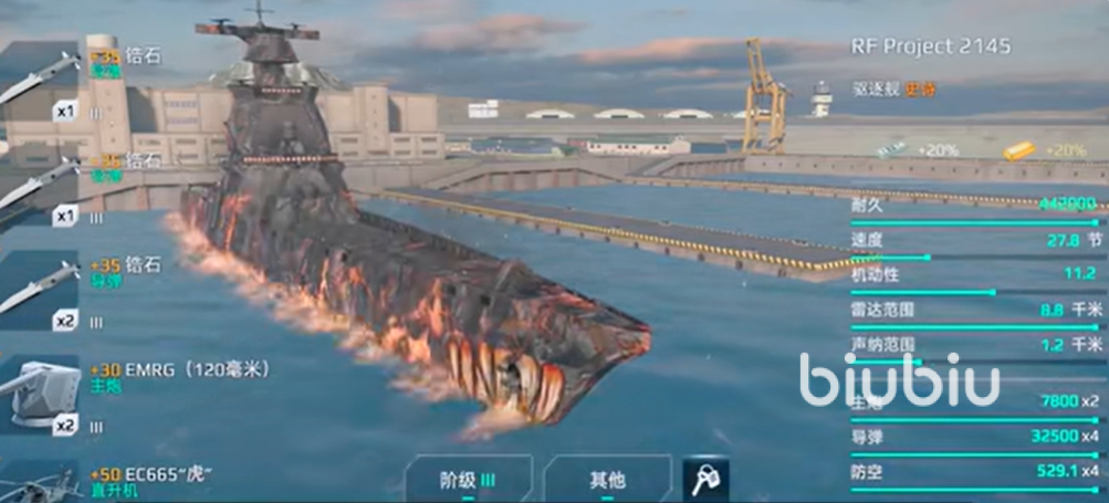 2145工程的核心优势在于导弹与火箭炮的密集输出,这一特性让它在面对不同对手时都能展现出强大战斗力 。在应对航母编队时,它可以凭借导弹的远距离打击能力,率先对航母发起攻击,打乱敌方节奏。同时,火箭炮的大面积覆盖伤害,也能对航母周围的护航舰艇造成有效打击,削弱敌方编队的整体实力。