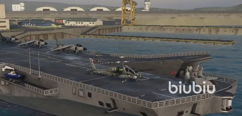 之后是装备,这艘航母搭载有一架f14攻击机、1架f18大黄蜂战斗机和1架1-27的直升机,这些飞机均为2级飞机,这飞机的配置也是比较高的因此强度就比较高,之后是第二艘要给大家推荐的航母。