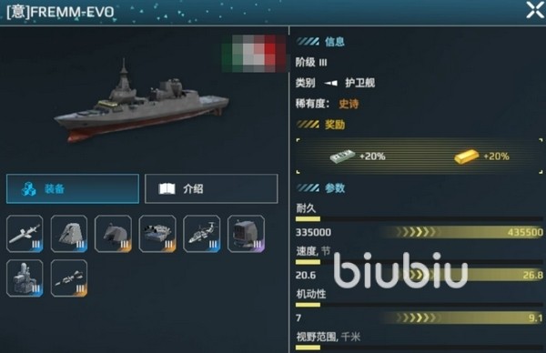 目前最推荐大家使用的是意大利的三级护卫舰“FREMM-EVO”,以下简称evo。它的最大优势在于火力,有2座自由主炮搭配4座锁定火箭炮,双35mm高平两用机炮,在输出方面直接对标中型巡洋舰。