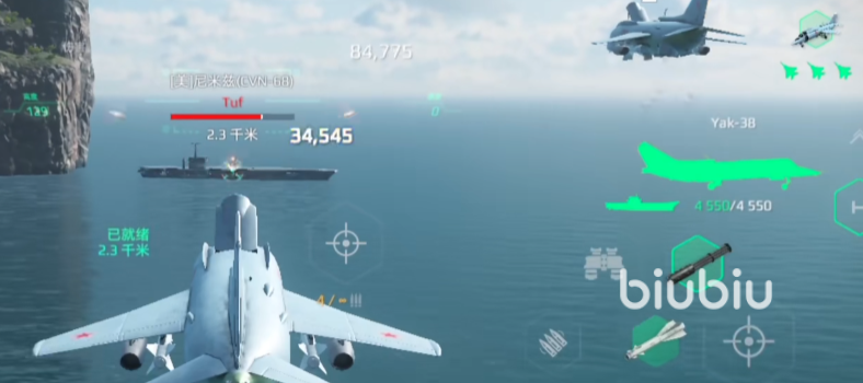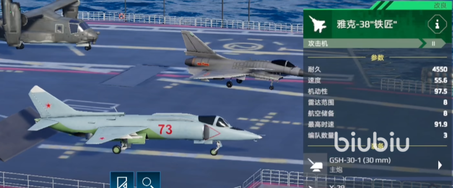雅克-38铁匠,作为全游戏仅有的两款可悬停攻击机之一,它以45万美金的售价和4550的高耐久,在实战中主要发挥的是“固定火力点”作用。其搭载X-29导弹与无制导火箭弹,虽然导弹伤害仅2.7万略显偏低,但在悬停状态下可以实现火力连续压制,命中率更高。虽然速度表现一般(极速606),但其特有的垂直起降能力极大提升了复杂地形中的战术多样性。测试数据显示其单轮爆发8.9万,满伤17.8万,属于中等偏上水平。推荐给喜欢防守反击、阵地战术打法的玩家。