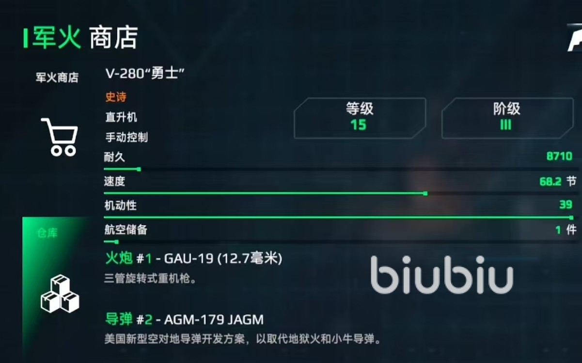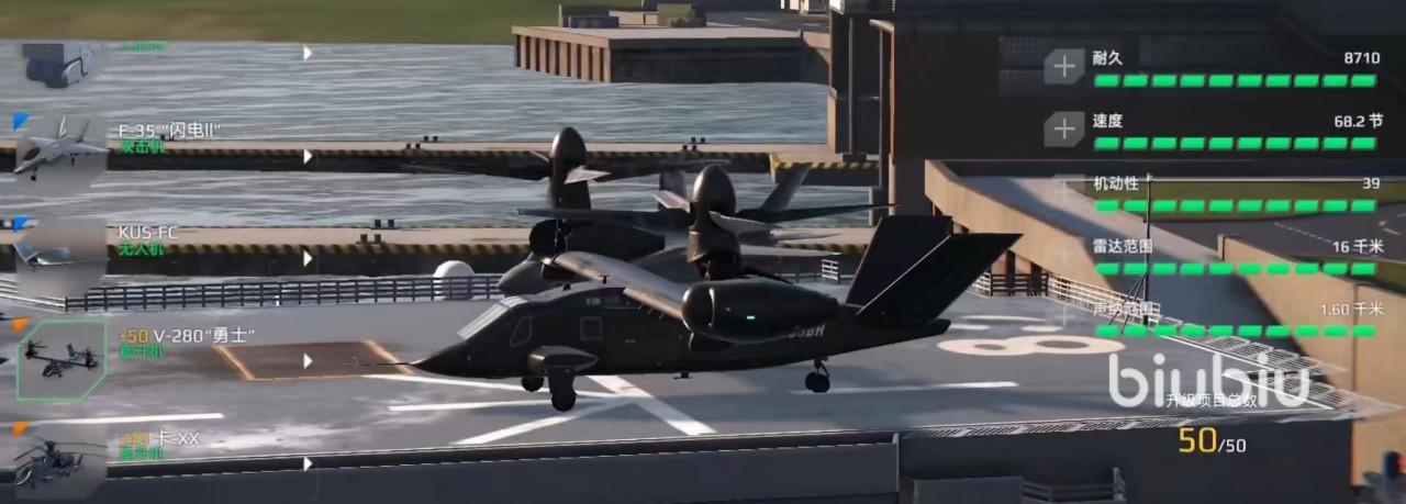 SV-22还搭配了鱼雷,每枚伤害达到2万,一共能够输出6轮,缺点是装填时间比较长,需要18秒才能再次发射,但出色的伤害能力已经足以使其傲视群雄。V-280作为三级直升机,可以当成是二级的强化版,武器更加丰富,拥有机炮、导弹和鱼雷,无论是在防空、反舰还是反潜等方面,都有着出色的功能。能够有效应对对方的飞机,对敌方舰艇也有一定的攻击能力,是海战过程中的多面手。