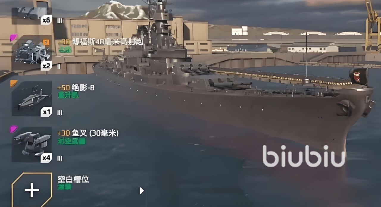 该战舰配备了三门三年406毫米主炮,所以伤害值非常的高以及射程远,但是它的射速是比较慢的以及炮弹的飞行速度也比较慢,所以适合远距离的打击。在面对一些高防御的目标时候,大家一定要去注意。副炮则搭载了六门127毫米双年的炮,数量也是非常的多以及设计速度快,对于近距离的战舰来说威胁也是有着一定的伤害。还搭配了舰空导弹和反航导弹,舰空导弹可以拦截敌机保护舰队免受空中威胁。