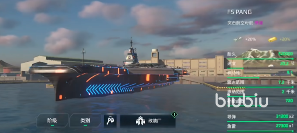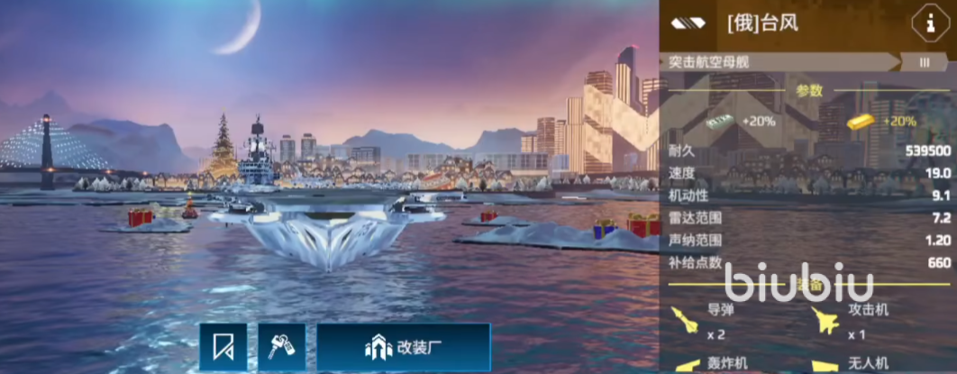 韩系突航,理论强度极高,拥有四架舰载机是其最大亮点,但超低的补给点和极弱的本体防御,令其极度依赖环境与队友保护。在视野机制调整后,其隐蔽性优势大幅下滑,而导弹系统的调整也未真正提升其实战能力,因此虽有极高上限,但不推荐普通玩家作为主力使用。反观“暴风雨号”则是一艘更适合新手上手的航母,虽然本体属性全面垫底,但其三枚导弹、两枚火箭与两架直升机的组合让她的自卫能力十分稳健。没有无人机意味着输出上限较低,但简洁的操作,并且不容易被偷的防线,很适合刚入门的玩家去理解航母战术与节奏。