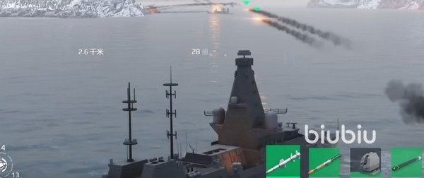 再加上自带烟雾弹可用来回血与脱战,让26型在对线时具备极强的生存弹性。不过它也存在主炮命中率低、导弹突防率有限的劣势,尤其在需要持续高命中的环境下,移动射击并不稳,但总体而言仍是非常全面的护卫舰首选之一。