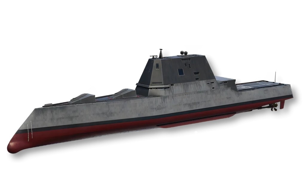 朱姆沃尔特级驱逐舰是美国海军最新一代的多用途对地打击宙斯盾舰,拥有尖端的隐身设计。核心配置为战斧导弹用于消耗敌方防空,搭配俱乐部导弹进行穿甲补刀,鱼鹰直升机则是反潜作战的必备力量。不过需要注意的是,朱姆沃尔特的防空能力相对较弱,面对高强度空袭时较为吃力,因此建议玩家通过手动操作来弥补防御短板。
