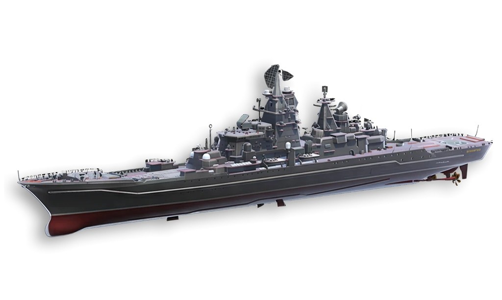 彼得大帝巡洋舰是俄罗斯海军的核动力导弹巡洋舰,也是世界上吨位最大的非航母战斗舰艇。其爆发配置为双主炮加三枚导弹槽,X51导弹在单轮齐射时能造成超过12万点的伤害,虽然需要玩家提前预判敌方热诱弹的使用。新增的鱼雷槽显著提升了其反潜能力,火箭炮方面则必备贴脸秒伤高达22万的A22导弹。但彼得大帝的机动性较差,是全游戏中转向最缓慢的舰艇之一,极易成为鱼雷的集火目标。