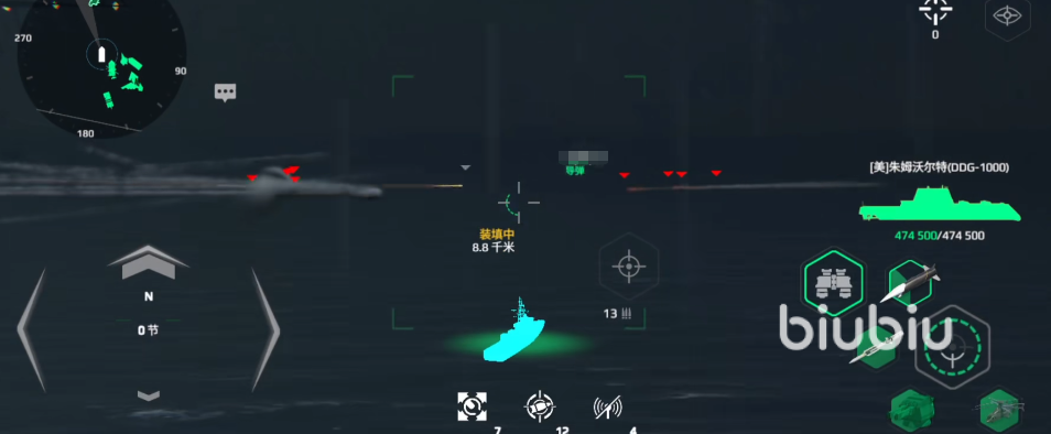 在玩家进行实际操作的时候,可以考虑去针对移动目标提前去计算,尤其是舰船转向时,建议增加1.2倍补偿值,到时利用导弹速度快的特点去优先攻击敌方薄弱部位。