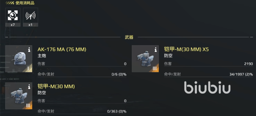 拦截导弹测试,雀鹰,9公里,理论拦截9发,实机拦截0发。6公里,理论拦截9发,实际0发。布拉莫斯,理论拦截6发,实际0发;6公里,理论拦截9发,实际0发。可能是因为延迟原因导致导弹拦截率惨不忍睹,也可能是因为索敌削弱的原因在打飞机的时候会有部分拖把。