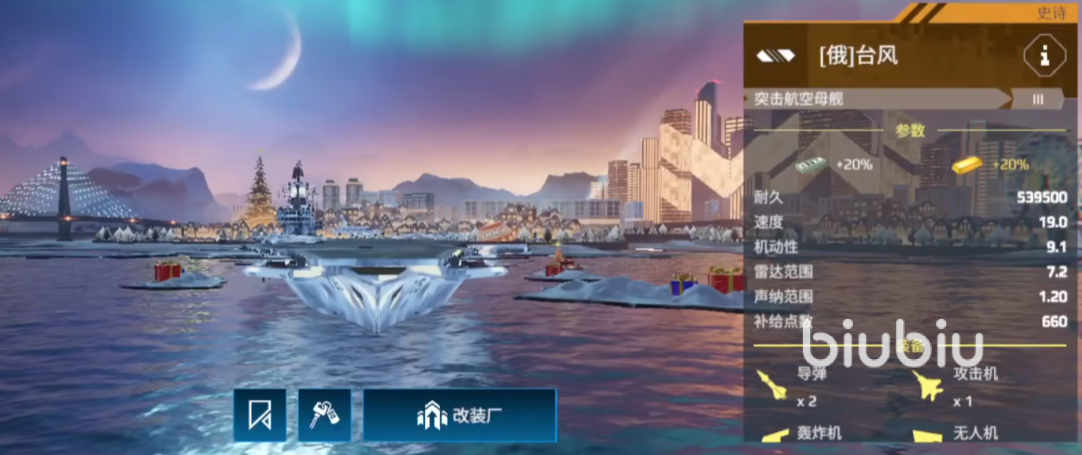 新增一枚火箭炮,提升了自卫能力,总体强度不高,属性方面无特色,速度、血量、机动都并不突出。不过有拦截机还是抬了上限,总的来说各方面都十分的中规中矩,既没鲜明的优点,也没有太大的缺点,可用但有更好的选择,相台风、暴风强度要略高一筹。