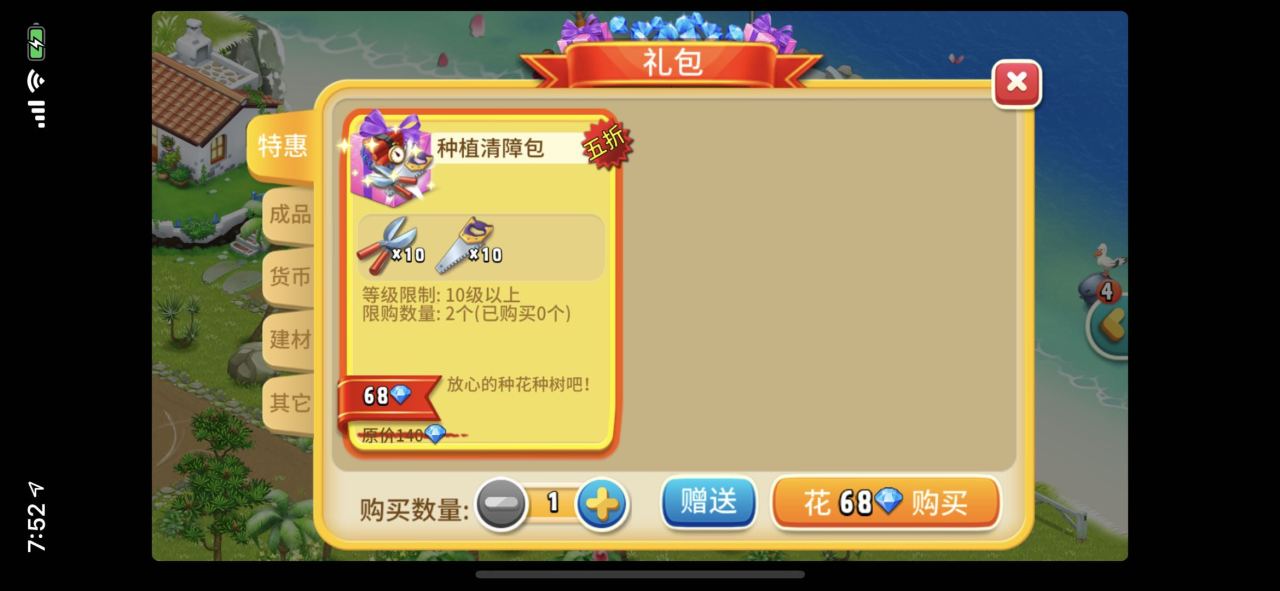 注意,限时活动购买的海图礼包一般是限量供应的,因为获取到一个小岛只需要十六张海图,如果能开放购买的话,很快就会有大批玩家花钱解锁海岛,这样就让海岛的游戏玩法变得更普通也更寻常了。平时的海图礼包一般是限购一次的,一定要时刻关注游戏主界面给大家的推送,看到有海图出售就抓紧拿下,拥有海岛的玩家就不需要买了。