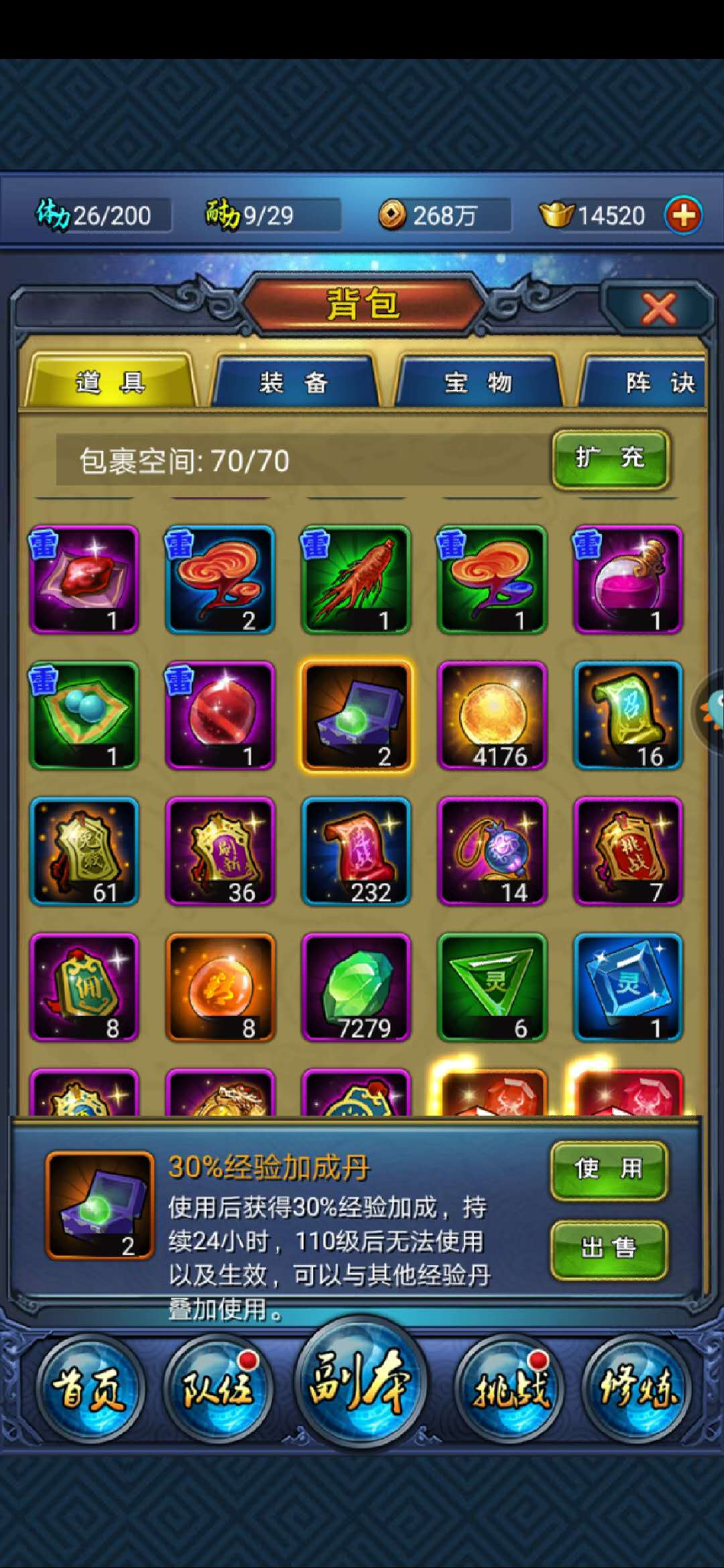 可以说只要使用了经验丹就相当于比其他玩家多获得30%的经验,主角升级的速度也会快30%,时间久了积累起来也是非常大的一个优势。