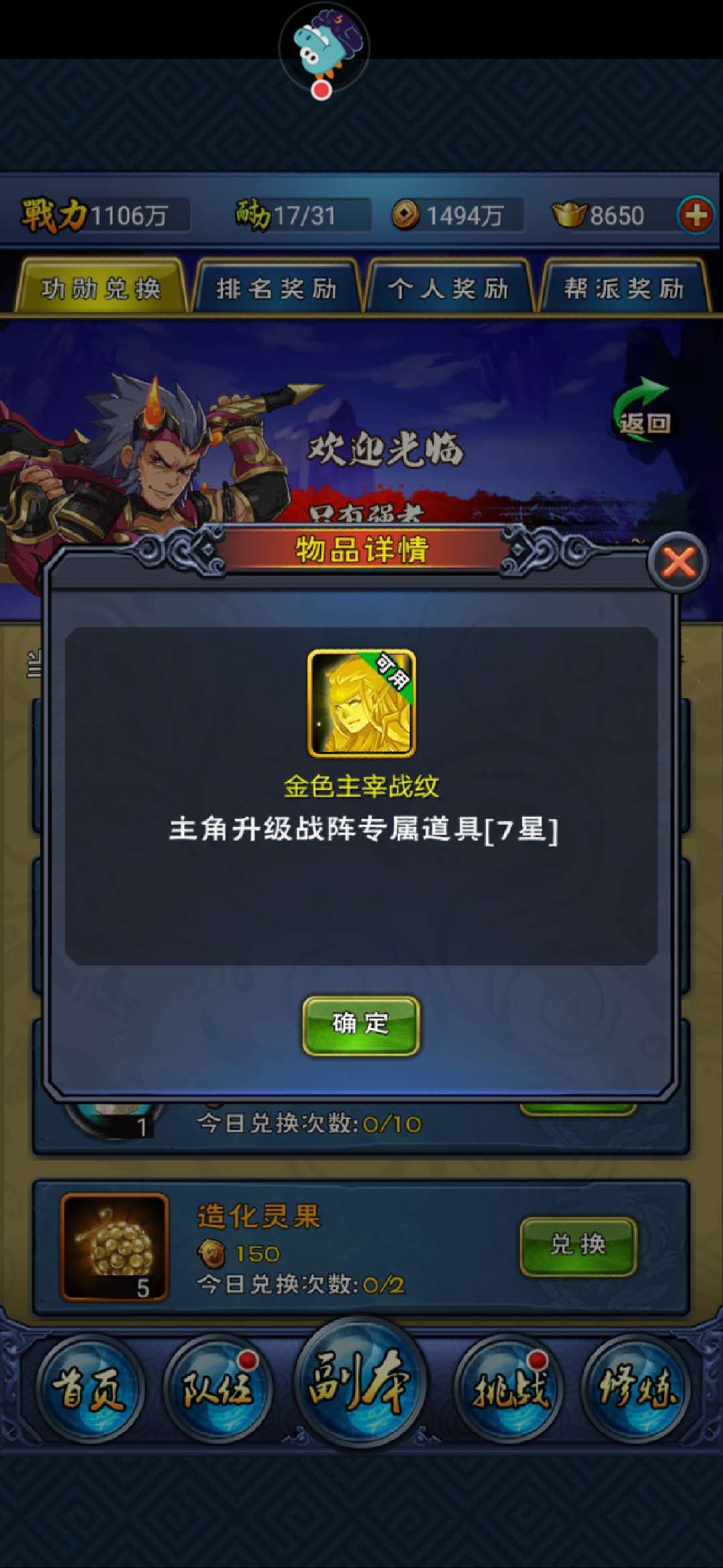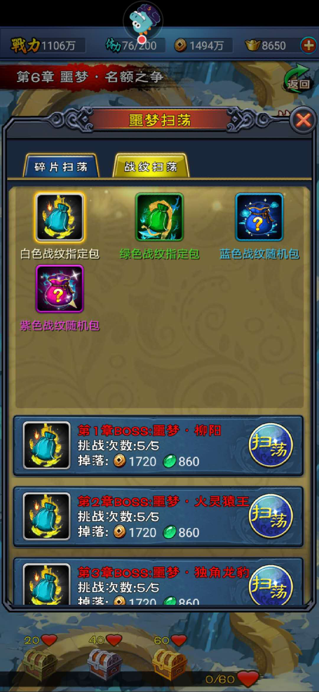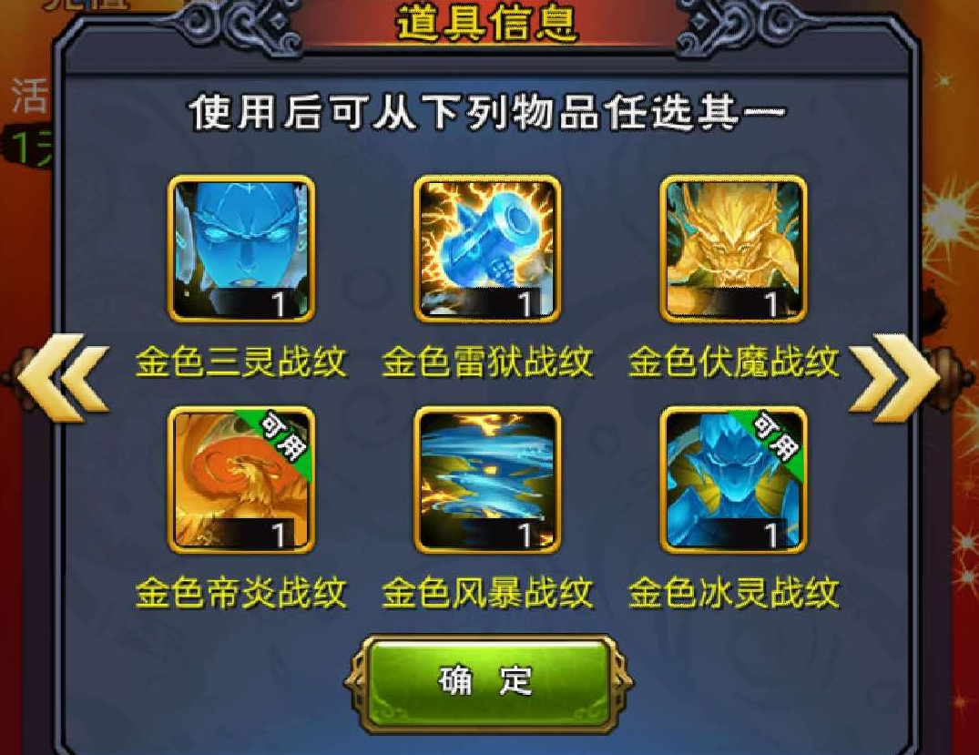 其他英雄需要的金色战纹获取途径是通过开启战纹指定礼包和神域兑换来实现,战纹指定礼包获取方式为挑战高等级的噩梦副本,在副本选项中,点击噩梦副本,选择扫荡功能中的战纹扫荡,就可以自动获得我们需要的战纹礼包了。