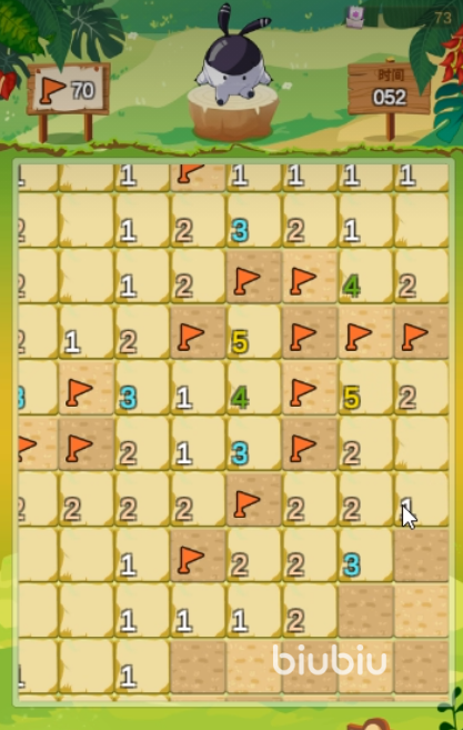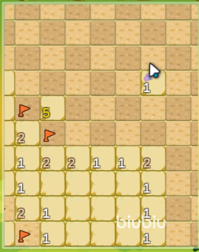 根据这个规则,当我们点开一个格子后,如果这个数字比较大,我们就尽量不要再选该格子周边的格子,这样子就有比较高的机率存活到后面,有游戏后面就会出现很多被我们剩下的格子,这时我们就要结合这些格子周边的数字来考虑。