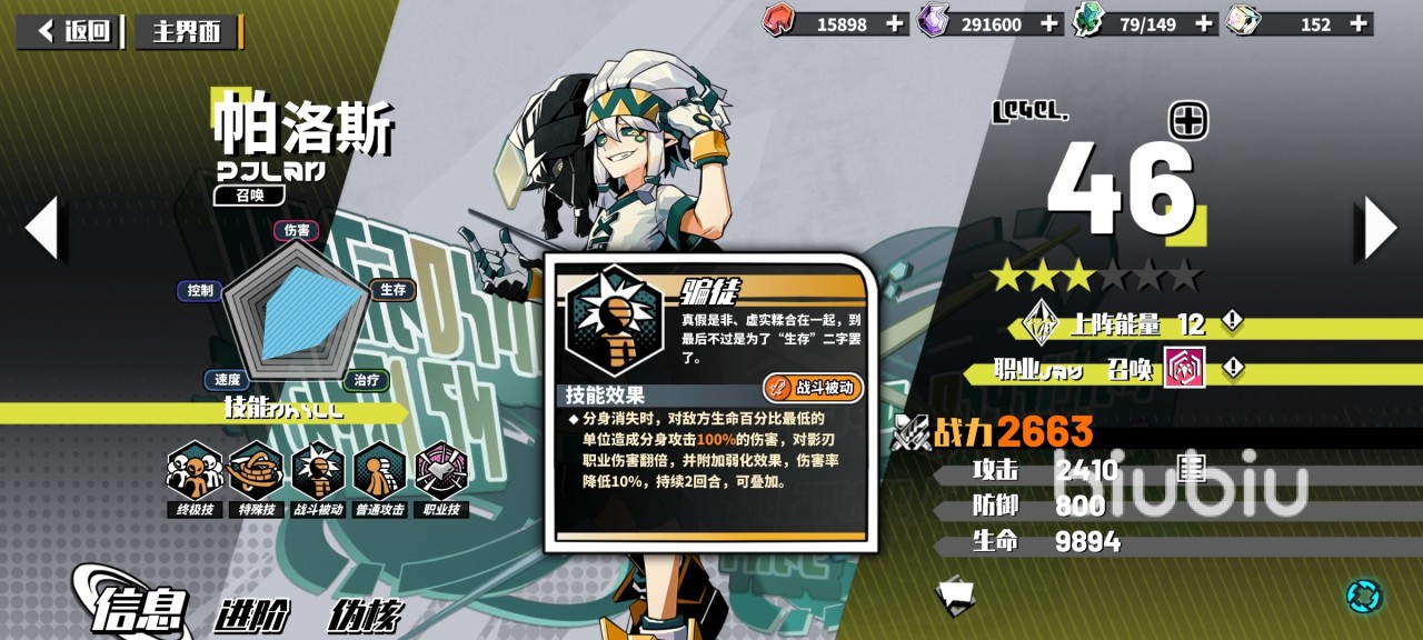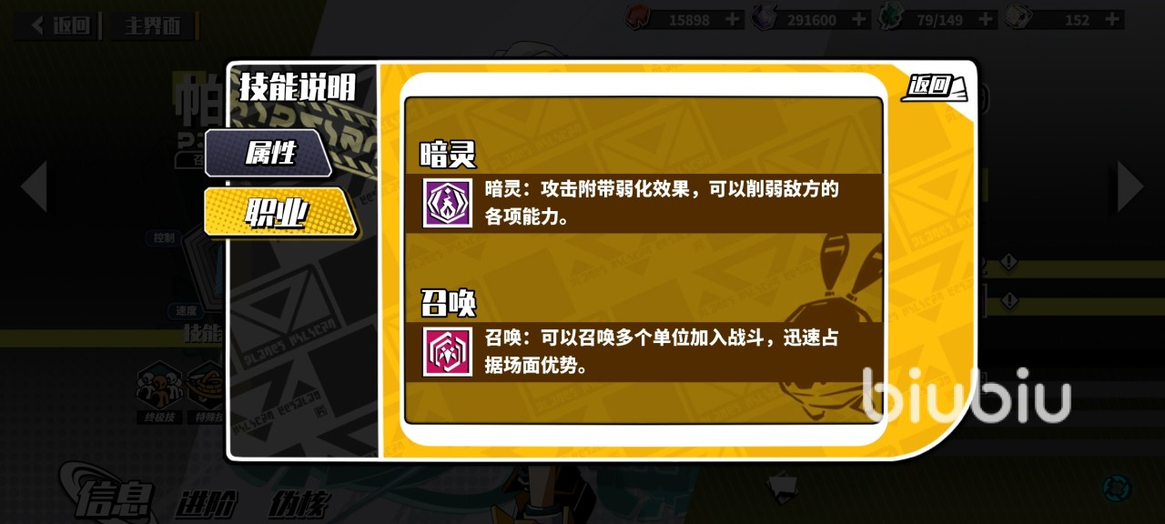 看到属性克制可以知道这个角色的职业没有任何敌人,所以这个角色主要适合的就是防守的阵型,只能立刻释放或者放到最后释放抵挡关键的技能,要用他打输出需要玩家非常高的练度而且搭档也要足够的给力。