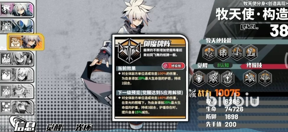 然后是“构造”,强化牧天使的生存,为伙伴提供生命值加成。提升初始能量,并且每次使用终终极技能的时候还会降低最高费能量的1点能量,但这个激活条件需要有2个召唤职业,但目前召唤并不强势。觉醒技可以获得进一步加护,降低受到的范围伤害,终结技AOE和生命值护盾,可以看得出这是一只生存防御向的天使,