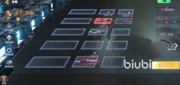 玩法上来看它属于是那种非常典型的数值向卡牌手游,战斗本身是不需要太多手动操作的,更多是在战前进行布阵和养成,上阵位置一共有15个,并且有cost限制,战舰数量多了之后,就可以研究一些特定的组合和站位搭配了。